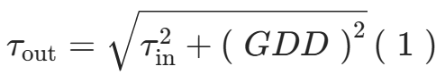 对单色宽的高斯脉冲,展宽后持续时间可近似用下式估算: