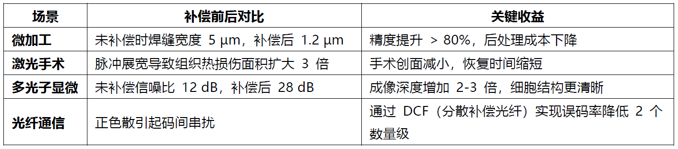 • 这种速度差导致原本紧凑的脉冲在传播途中被 “拉伸”,峰值功率骤降,导致加工精度下降、成像对比度减弱等一系列连锁问题。