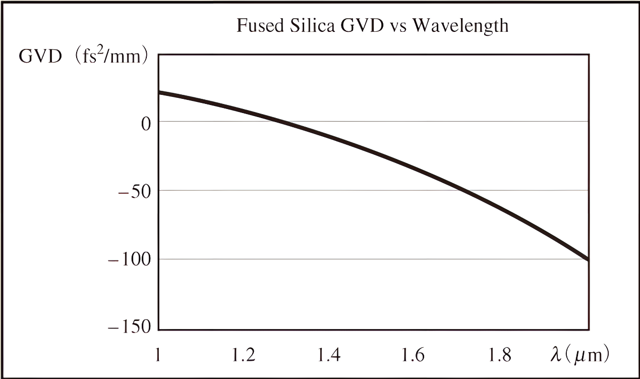 图3:在 1.3 μm 附近具有零色散波长的合成石英的波长相关群速度色散(GVD)特性