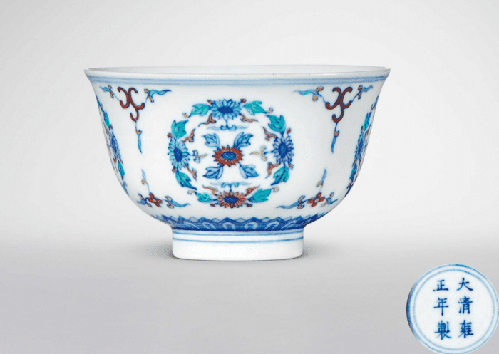清雍正 斗彩团花纹卧足杯 清雍正 斗彩团花纹卧足杯