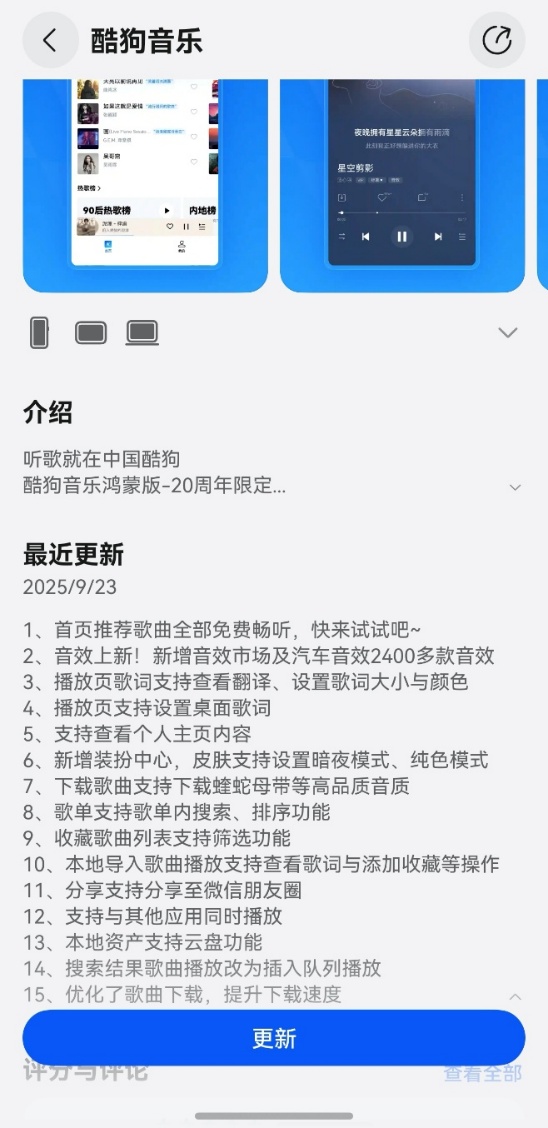 不得不说,鸿蒙版酷狗音乐真的在用心听用户的声音。从最开始的基础播放功能到现在的功能日渐全面,每次更新都能感受到团队对咱们用户体验的重视。特别是搭配上鸿蒙5的跨设备接续等创新功能,整个听歌体验变得更加智能便捷。