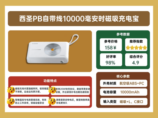 1、西圣PB磁吸充电宝