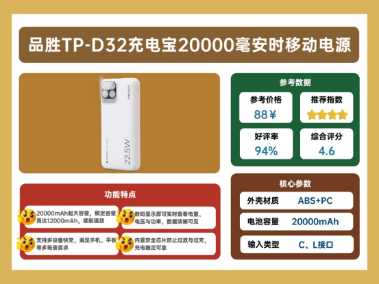 所以想挑到一台真正耐用又价格合适的充电宝,确实得下点功夫。广告可以很热闹,但能不能稳定输出、续航够不够硬、温控做得稳不稳,才是决定体验的关键。这次我根据长期使用体验和产品数据,整理了一份2025年口碑公认的十款顶尖充电宝推荐。这十款都是市面上热销、口碑稳定、使用体验扎实的型号,走的都是高性价比路线,适合想入手靠谱产品的人参考。