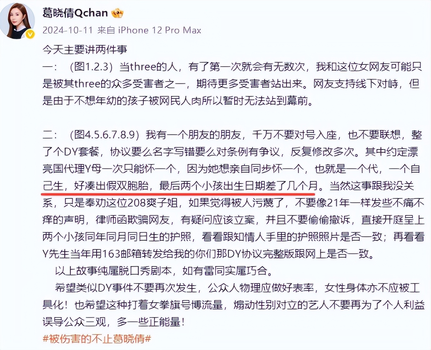 那时候葛晓倩还比较克制,没有拿出实锤证据,更多是在陈述自己的遭遇和不满。