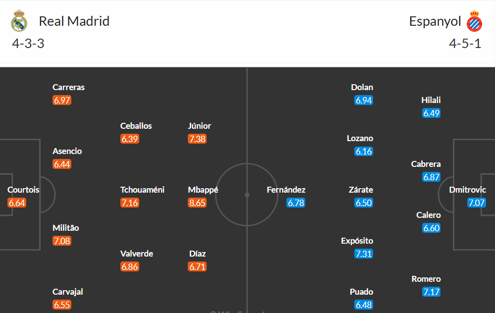 今晚怀森停赛,吕迪格伤停,皇马的中卫组合又是打明牌——米利唐+阿森西奥。他们需要面对的是拿到三十年以来西甲最佳开局的西班牙人。前四轮比赛,西班牙人3胜1平,目前以10分排名西甲第三。老实说,西班牙人这个10分拿的含金量极高。虽然他们前4轮有三个主场,但是这三场他们全胜,对手先后是马竞、奥萨苏纳和马洛卡,其中仅有马洛卡实力较弱。马竞自然不用多说,奥萨苏纳也是欧协联级别、泛巴斯克大区球队,风格硬朗,结结实实的硬骨头一块。