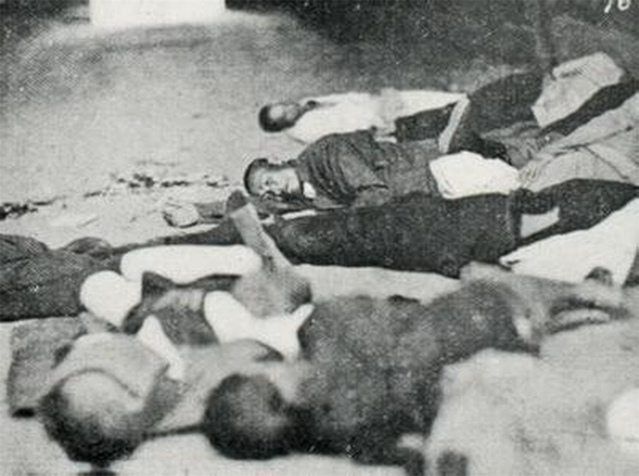 为了防止有人还没断气,这群暴徒用浸湿的棉被覆盖尸体,再压上沉重的石块,导致大量重伤者被活活闷死在粪池中。