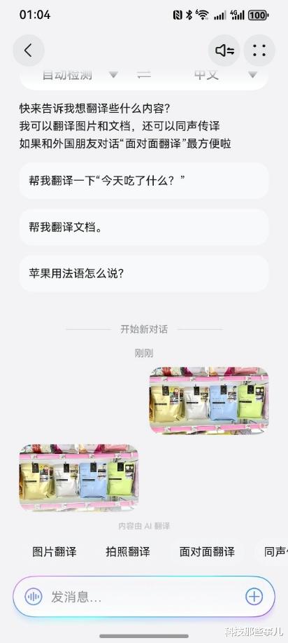 就在着急的时候,我突然想起我的华为Mate 60早就升级了鸿蒙5。我长按电源键唤醒小艺,直接说“打开小艺翻译助手”。选择“拍照翻译”后,对着和妈妈常用面膜包装差不多的款式一拍,不到三秒钟,翻译好的图片就出现在屏幕上,产品名称等关键信息都清晰翻译了出来。