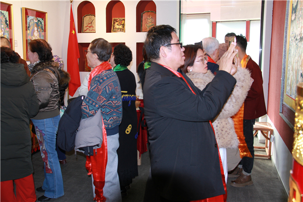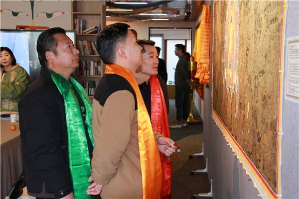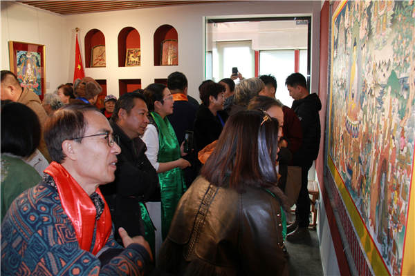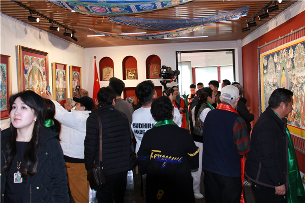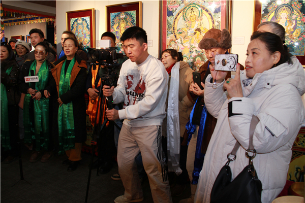 开幕当日众多文化界人士、收藏爱好者与市民慕名而来,观众在巨幅唐卡前驻足凝视,用手机记录细节,或在导览中提问交流,现场反响热烈。在细腻的矿物颜料与精湛的线条间,感受藏地丹青的风华。不少观众表示,此次展览不仅是一场艺术盛宴,更是一次心灵的净化之旅。