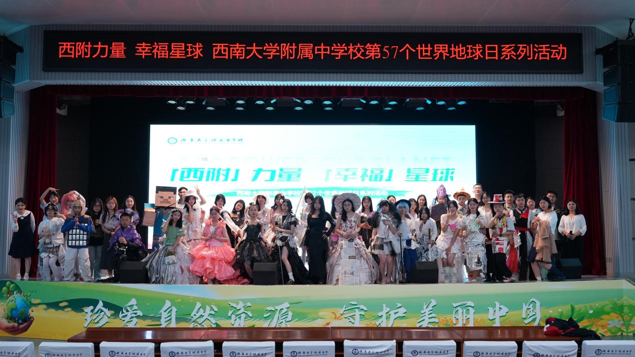 废弃报纸化作飘逸礼裙,塑料瓶、快递箱变身潮酷铠甲,青春宣言与绿色使命同频共振……4月22日,第57个“世界地球日”当天,西南大学附属中学校以“西附力量,幸福星球”为主题,举办了系列环保活动。通过学生主题演讲、环保时装秀等形式,生动诠释当代青少年对“珍爱地球,人与自然和谐共生”的理解与担当,更彰显了学校深耕绿色教育、培育生态情怀的坚定初心。