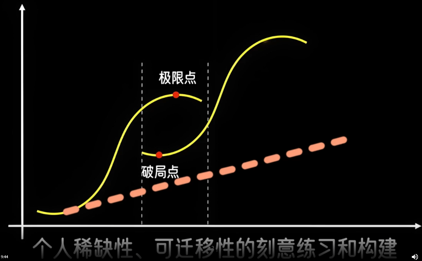 什么意思呢?从第1曲线到第2曲线的跨越是非连续性的,但是其下面藏着1条相对连续的隐性曲线。