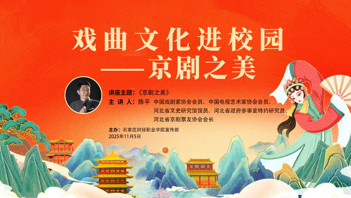 弦歌不辍,雅韵流芳。日前,石家庄财经职业学院迎来一场别开生面的文化盛宴 —— 特邀河北省名戏曲研究专家、河北省京剧票友协会会长陈平领衔一众优秀演员,携 “戏曲文化进校园 ——《京剧之美》专题讲座” 登台,以京剧为媒,让中华优秀传统文化的种子在校园沃土中生根发芽,让千年文脉在青春校园里薪火相传。该校党委宣传部长王英奎主持讲座,300 名教职工与学生代表齐聚一堂,共赴这场跨越古今的艺术之约。
