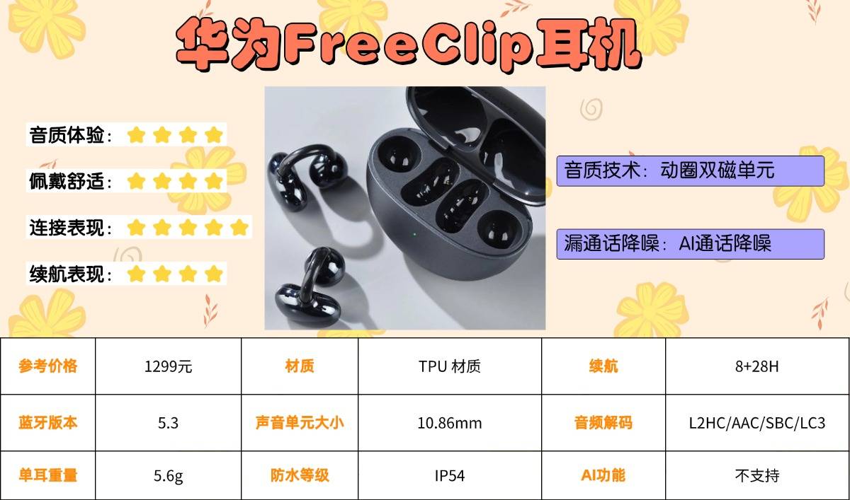 华为FreeClip开放式耳机的结构设计极具创新亮点,采用高弹性镍钛合金打造C型支撑架,即便历经上万次弯折,依旧能快速回弹恢复原状。耳机外壳选用TPU防污材质,支持直接水洗清洁,可有效抵御汗水与雨水的侵蚀。
