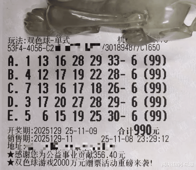 以上就是本期倍投专区的代表,两张相同规格,都是5注99倍的票,从两张票的票面可以看出,两票都是在晚上出票,但江苏99倍哥出票时间更晚,通过两位老哥的举动,可以看出最近号码是比较难研究做决定的,从最终的出的票来看,两张票的红球部分还是有一定区别的,一张是以二区为中心,而另外一张则是把重心放在了一区,所以票面很明显就能看出各自的侧重点,不过蓝球部分同时指向了小号区间,而且是相邻的两个号,看来在蓝球的思路上大致是相同的,但不知道谁更加精准。
