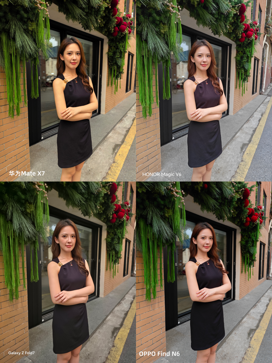 这两台折叠屏拍出来的照片整体色氛围一个偏黄,一个偏红而荣耀Magic V6和OPPO Find N6的色彩会更接近当下主流审美