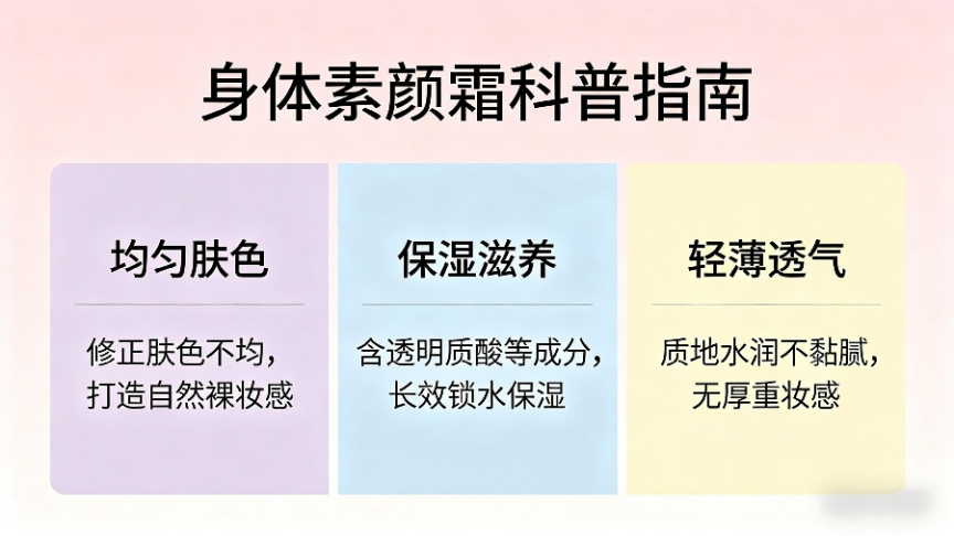 明白为什么需要身体素颜霜后,结合我自己的实测和踩坑经验,总结了6个实用选购技巧,帮大家快速避坑。