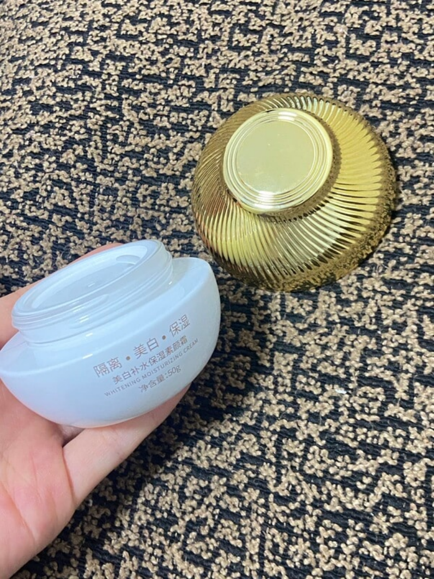 质地是膏霜乳,偏厚重,延展性一般,需要多涂抹才能推开均匀,上脸有轻微厚重感,干皮使用后不卡纹、不起皮,保湿效果很好,油皮使用后会有些泛油光。成膜速度较慢,需要17秒才能成膜,成膜后不黏腻、不蹭衣,香味是茉莉香,清新不刺鼻,用法简单,适合干皮学生党日常基础提亮。