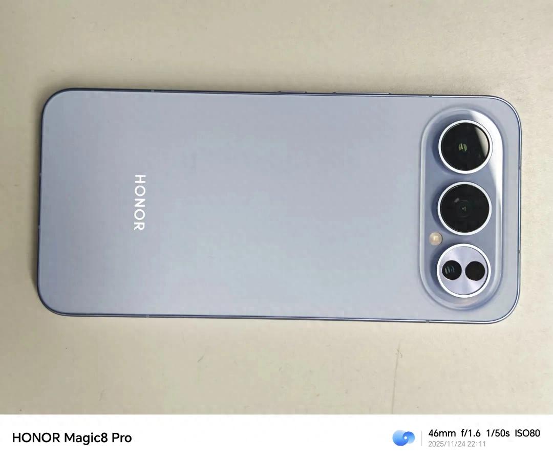 比如我们先通过参数来感受一下,荣耀500Pro,作为一款拥有8000毫安时电池、骁龙8 Elite处理器、三星HP3 1/1.4主摄以及IMX856长焦和超声波指纹+无线充的手机,屏幕尺寸控制在了英寸;重量控制在了201g,厚度更是控制在了7.75mm。