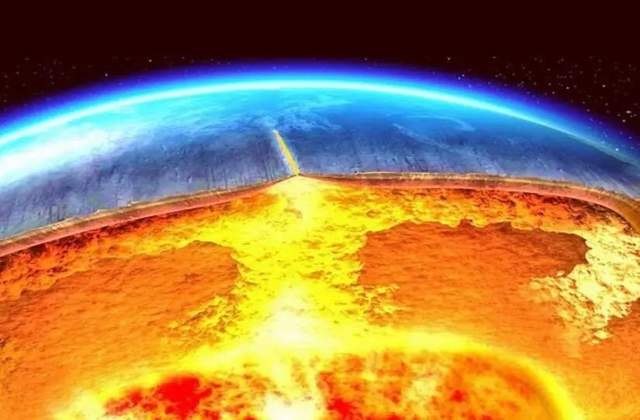 而“大洋中脊”,正是出现在海洋板块被撕裂或相互分离的地方,当地幔上升流出现在板块的薄弱区域或者两个板块的交界处下方时,板块就会被其巨大的力量分开,于是一个巨大的“裂谷”开始形成。