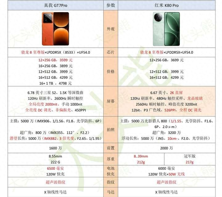 核心配置基本一致,都是目前性价比比较高的手机,3000多元的骁龙8至尊版手机,目前就这两了。