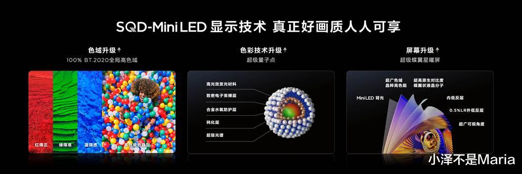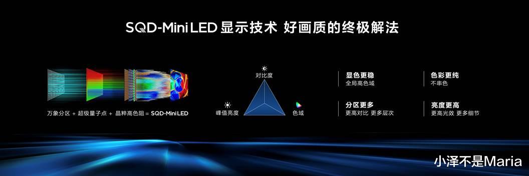 画质好不好,核心看三个指标——对比度、色域和峰值亮度。高对比度的画面能让建筑的瓦片纹理、风沙侵蚀的痕迹历历在目;高色域能还原人眼所见的真实色彩,带来强烈的视觉冲击;高峰值亮度则能完美呈现昏暗街道的车灯或宇宙星空的璀璨。而SQD-Mini LED技术的突破性意义,在于能同时满足这三点,通过极致控光、全局高色域和极致亮度三位一体,打造完整的“画质铁三角”,实现用户可感知的好画质。