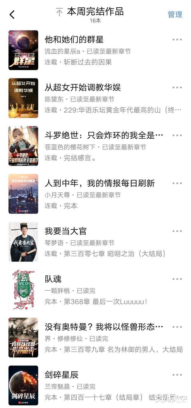 以上就是这周完结的一些小说了,这周还是有些热闹的,大热作品也有。
