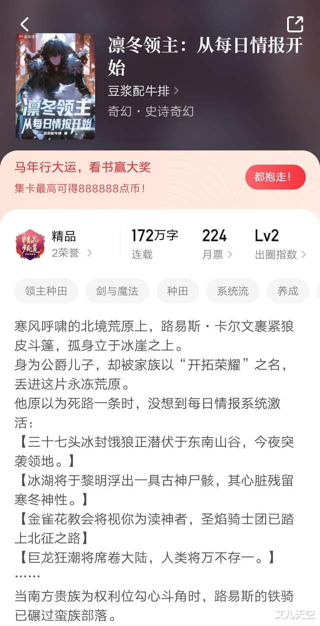 3、《凛冬领主:琮每日情报开始》172万字完本