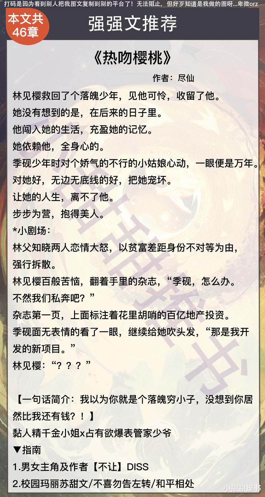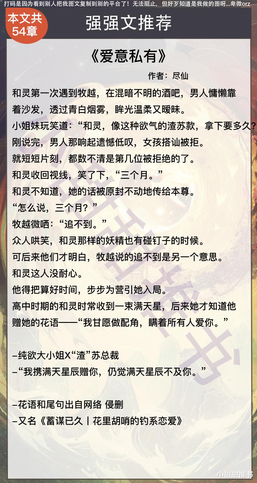 大家好,这期给大家推荐的是6本现言小说·男强女强甜文!第一本《爱意私有》作者:尽仙一句话简介:我来成为你所有的不期而遇。