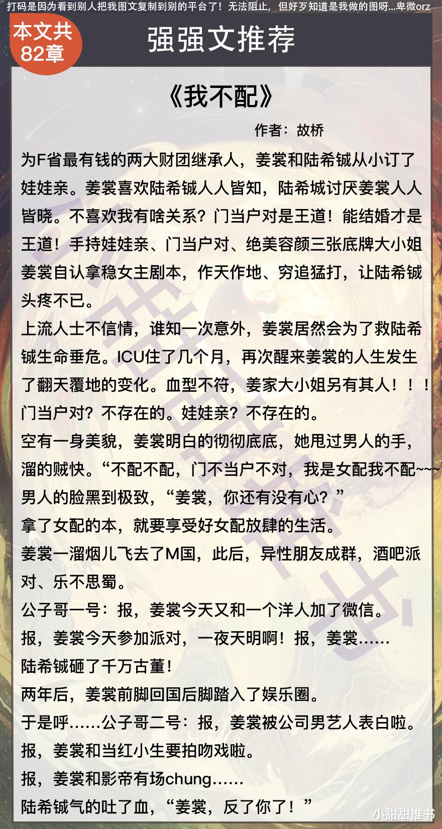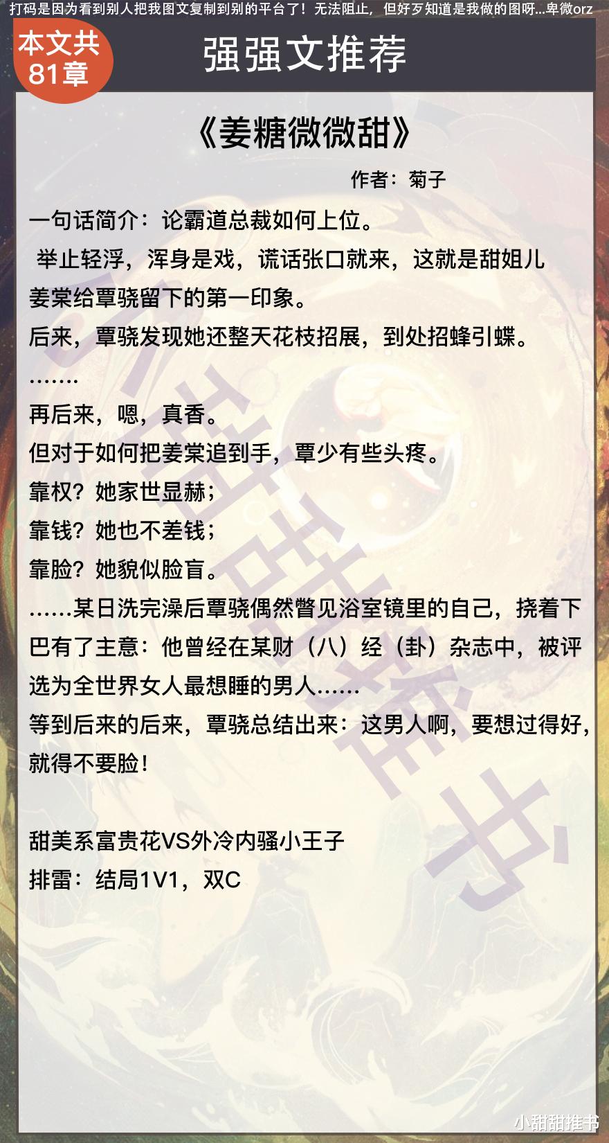 大家好,这期给大家推荐的是6本现言小说·男强女强甜文!