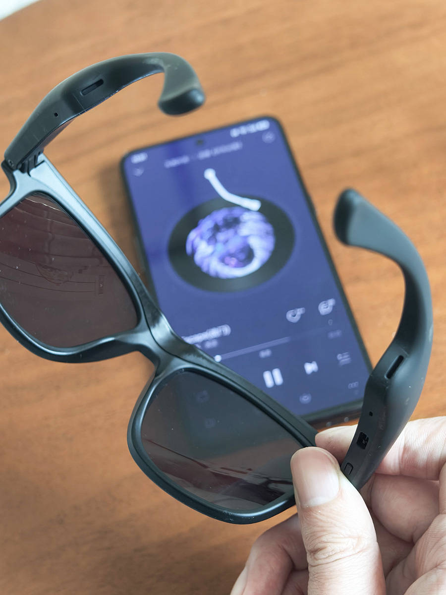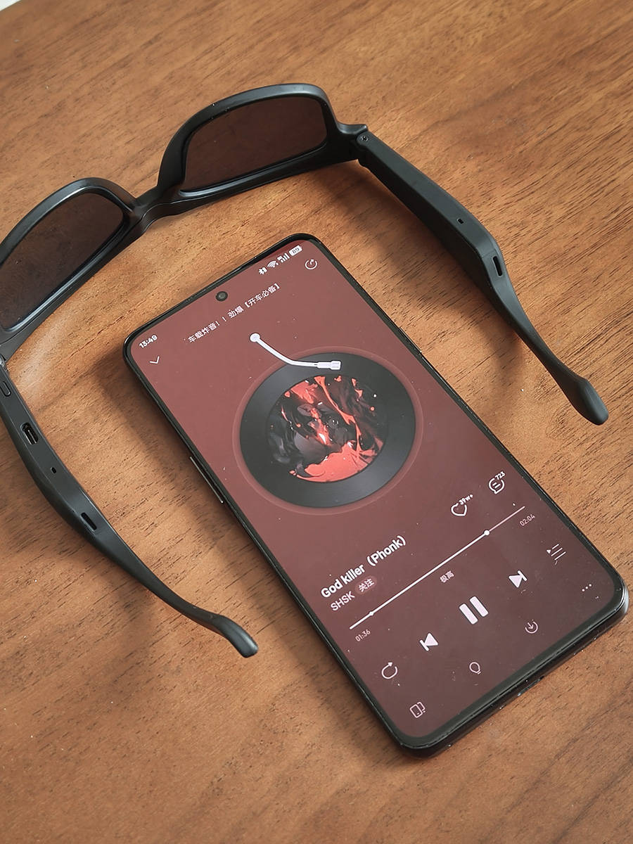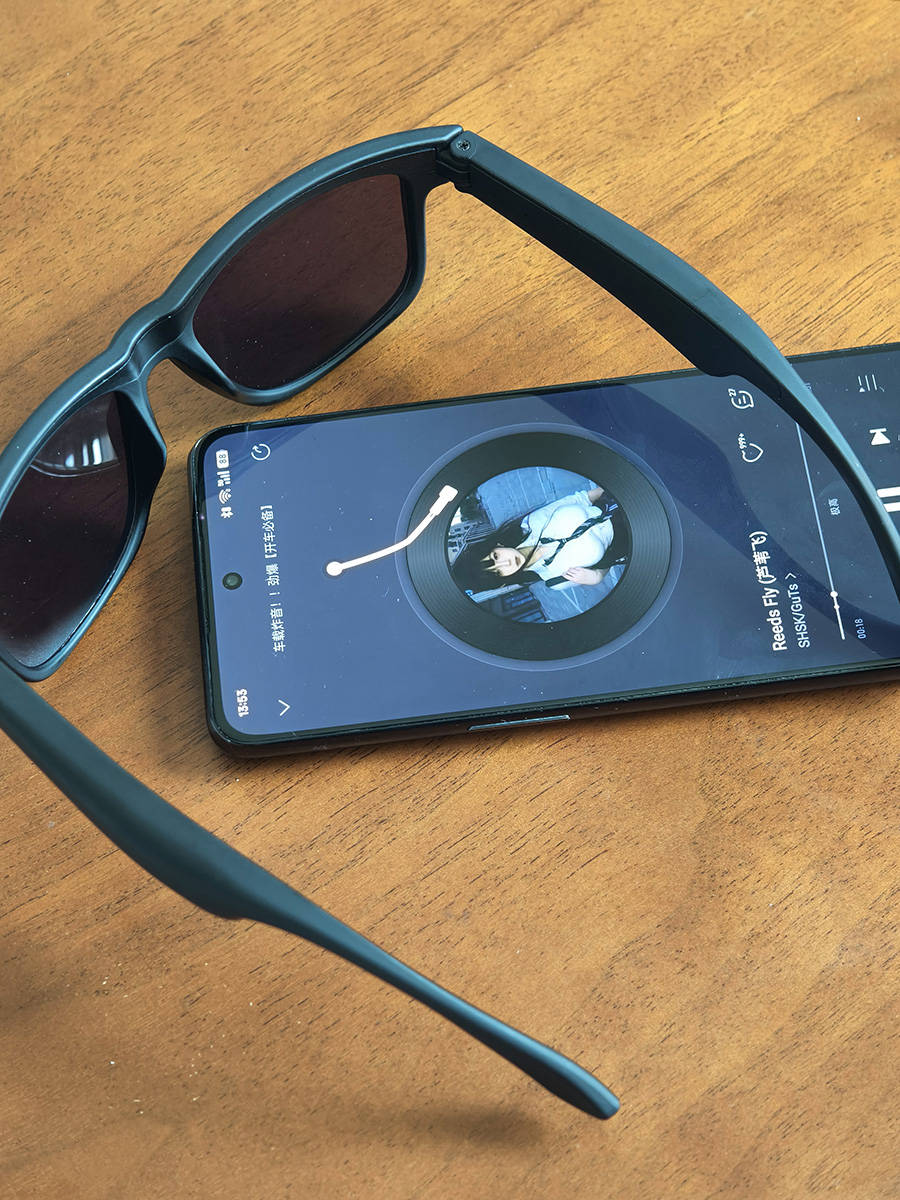 最戳我的是开放式听音设计,左右镜腿内置高保真扬声器,蓝牙5.4连接超稳,12米内不掉线,听歌清晰通透,还能听清环境音,跑步、骑行时安全感拉满,降噪麦克风接打电话也超清晰。多功能按键一键切歌、接打电话、唤醒语音助手、遥控拍照,全程不用掏手机。