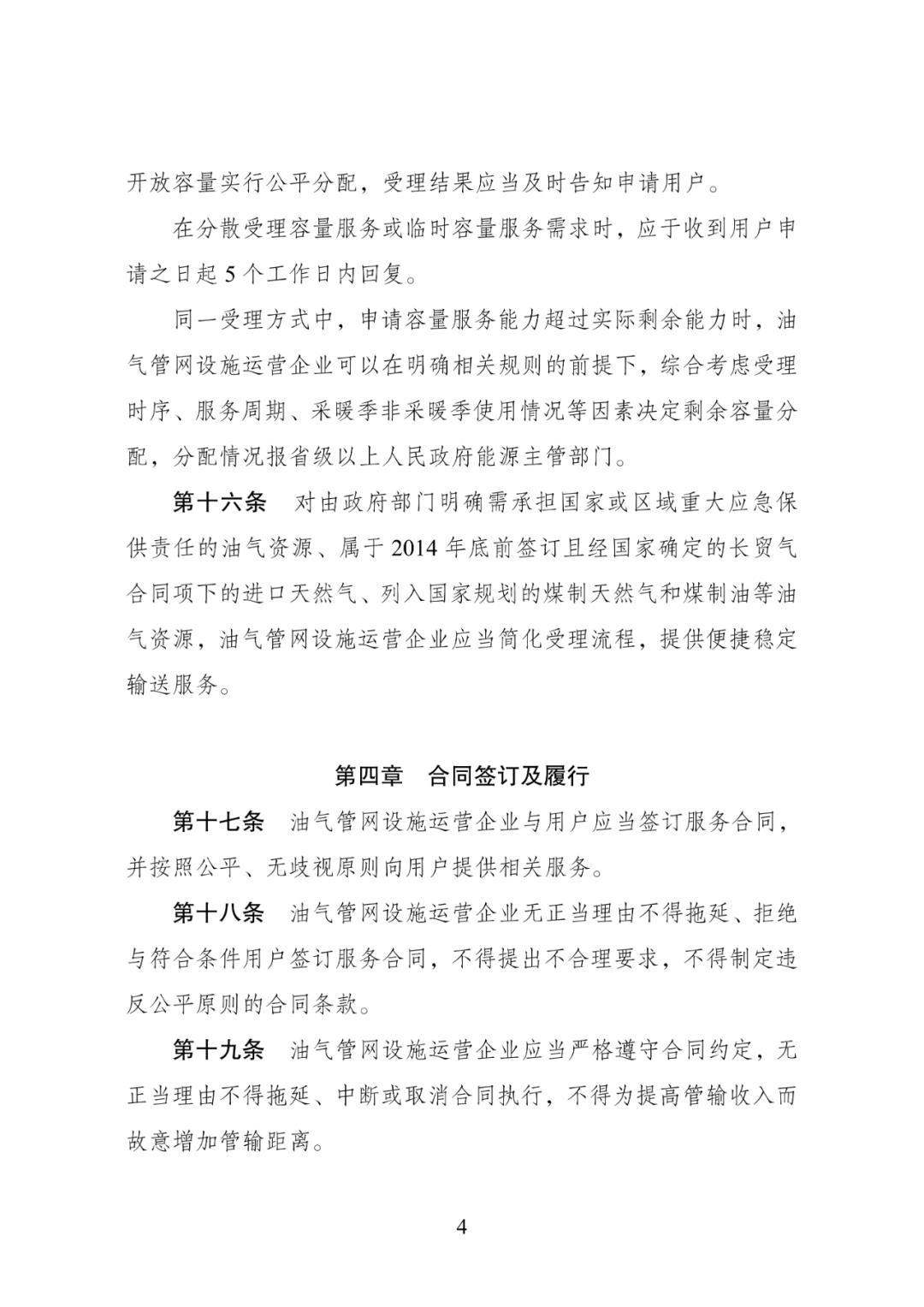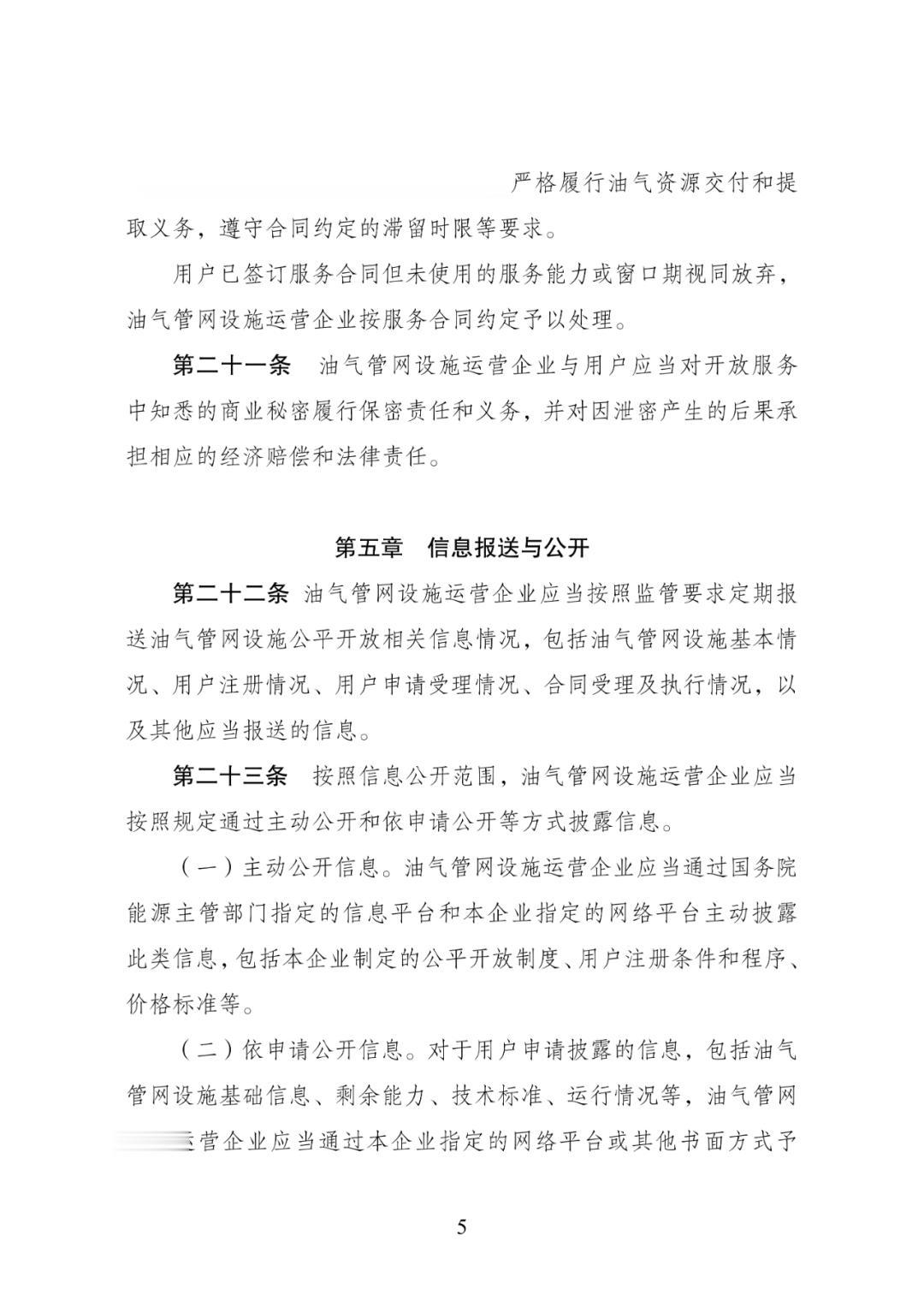 三是修改信息公开条款。按照信息类别,将油气管网设施公平开放相关信息进行分级公开。对于公平开放制度、用户注册条件和程序等基础信息,相关企业应当对社会公众主动披露;对于剩余能力、运行情况等敏感信息,相关企业应当对已注册用户披露,兼顾设施信息安全和用户需求。