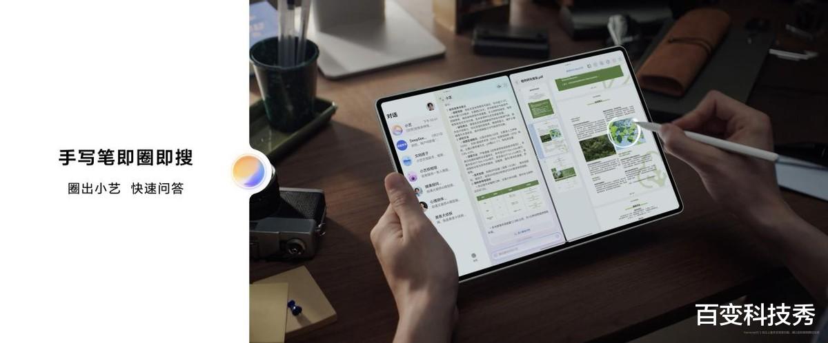 HUAWEI M-Pencil Pro手写笔则提供了更直观的AI交互方式。它首次搭载了快捷AI入口,单击笔尾智慧键唤醒小艺,双击语音转文字,让指令下达和内容输入更加快捷。在屏幕上用笔尖进行“小艺圈选”,即圈即问、即圈即搜,这种“所见即所得”的AI交互,让信息的获取和处理效率达到了新的高度。