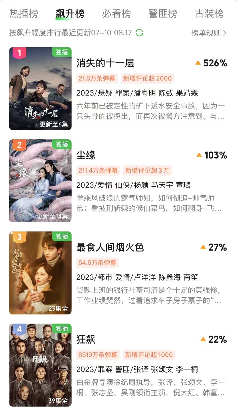 根据数据显示,《消失的十一层》上线首日就荣登飙升榜冠军。从开播的剧情节奏到演员在剧中的塑造都是好评不断,拿出了爆款剧的潜力。