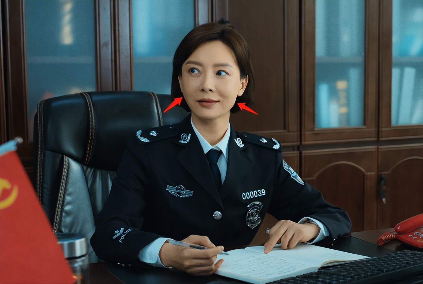 第一集里,陈数饰演的女警官严鸽一上线就顶着一张硅胶感十足的“假脸”,两个苹果肌有种不自然的圆润。