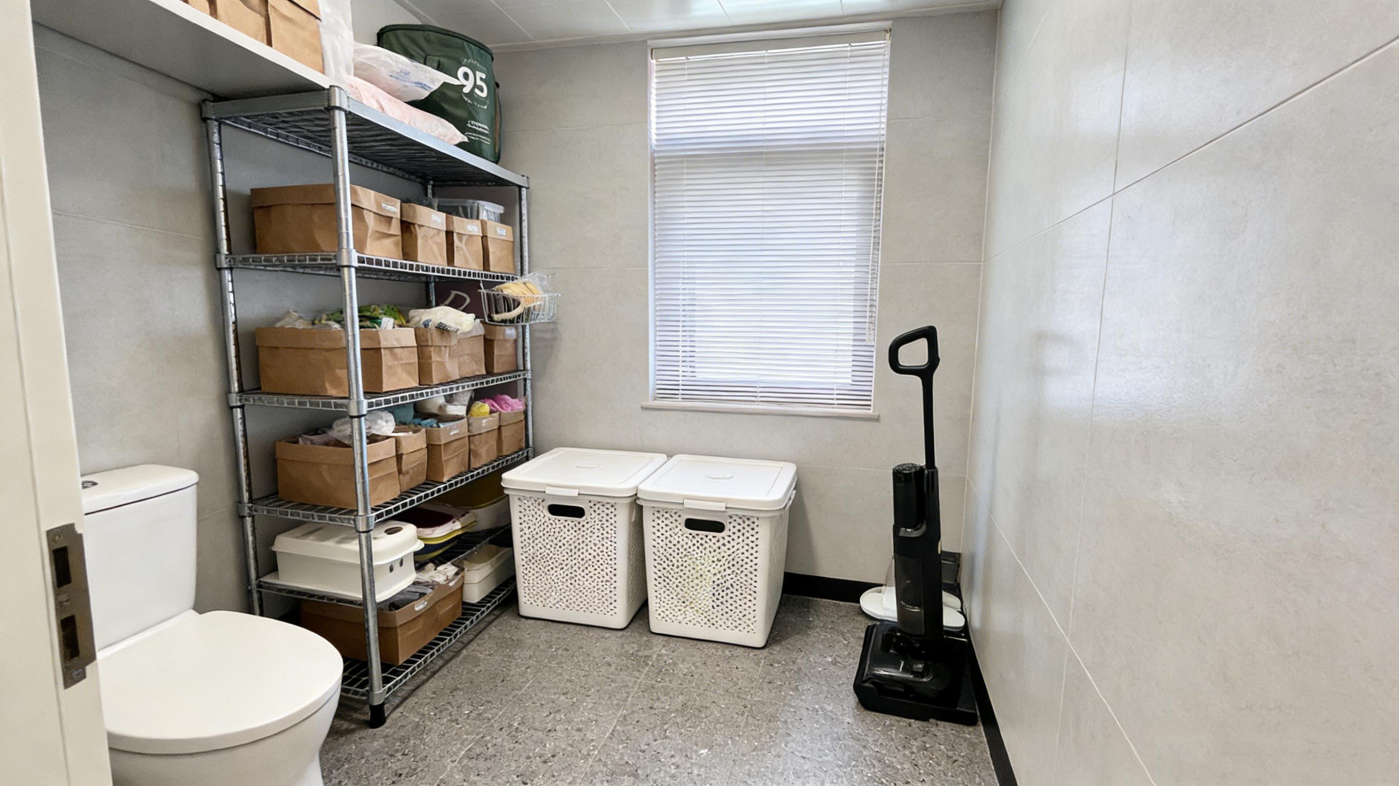 把主卫淋浴区改成杂物间,看似能解决收纳问题,但杂物间容易堆积灰尘,清洁起来很麻烦;如果杂物堆放不当,还会影响主卫的通风和采光,危害你的健康与呼吸。