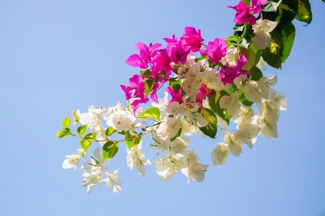超长的花期三角梅的花期之长,在花卉界也是名列前茅。一般来说,三角梅的花期可以从每年的 11 月一直持续到次年的 6 月,长达大半年之久。想象一下,在漫长的时间里,家中始终有一抹艳丽的色彩相伴,那是多么美好的事情。在这段时间里,三角梅就像一个不知疲倦的舞者,不断地绽放着自己的美丽。在一些南方城市,街道两旁种植的三角梅,一到花期,就会形成一片绚丽的花海,吸引着无数游客驻足观赏、拍照留念。