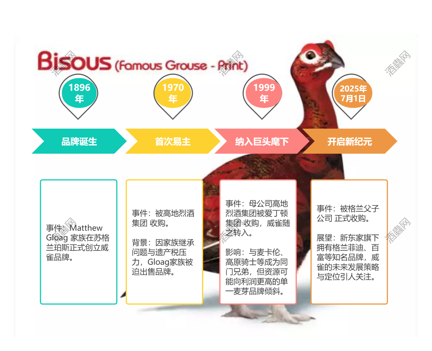 2024年9月,爱丁顿集团宣布将旗下的威雀和裸雀威士忌出售给格兰父子公司(William Grant & Sons),如今这一收购已完成。格兰父子表示,威雀是极为畅销的苏格兰威士忌,并且裸雀在调和威士忌领域也具有巨大的增长潜力。收购动机可归结为以下几点: