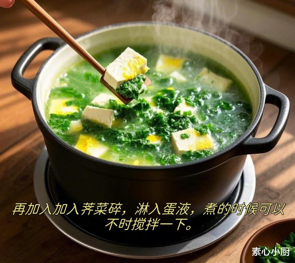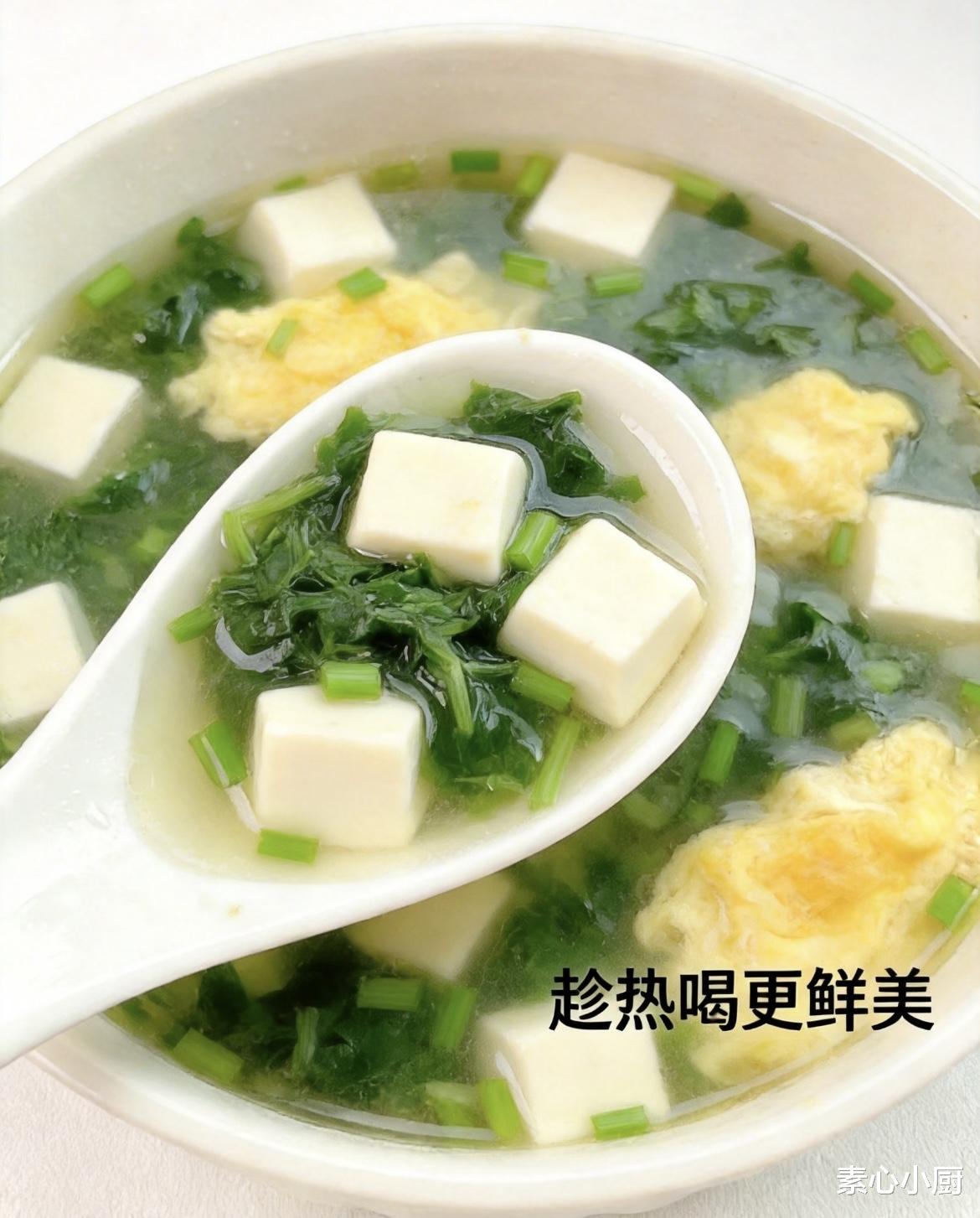 盛出一碗热气腾腾的荠菜豆腐羹,你会被眼前的画面治愈:洁白的豆腐如玉石般温润,翠绿的荠菜似翡翠般点缀其间,金黄的蛋花若隐若现,色彩清新得就像把整个春天都装进了碗里。凑近闻一闻,荠菜特有的清香直钻鼻腔,让人食欲大开。轻轻喝上一口,汤汁顺滑浓郁,豆腐入口即化,荠菜脆嫩爽口,鲜味在舌尖层层绽放。这道菜不仅好吃,更是春季养生的佳品。中医认为荠菜能清肝明目,豆腐益气和中,在这个容易肝火旺盛的春天,喝上这么一碗,既解了春燥,又补了营养,真是再合适不过了。