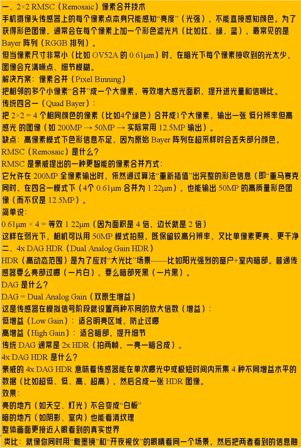 像素合并技术:支持 2×2 RMSC(Remosaic) 技术