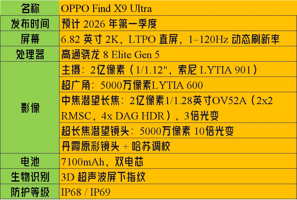 目前关于OPPO Find X9 Ultra 没有太多新消息,主要是潜望中焦的型号得到确认,采用的是豪威OV52A