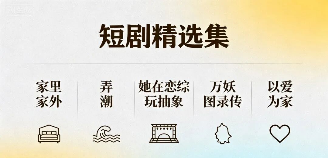 《家里家外》让我看到了家的温暖;《弄潮》让我看到了女性的力量;《她在恋综玩抽象》让我笑到缺氧;《万妖图录传》让我看到了女频爽文的新可能;《以爱为家》让我重新理解了"家"的意义。