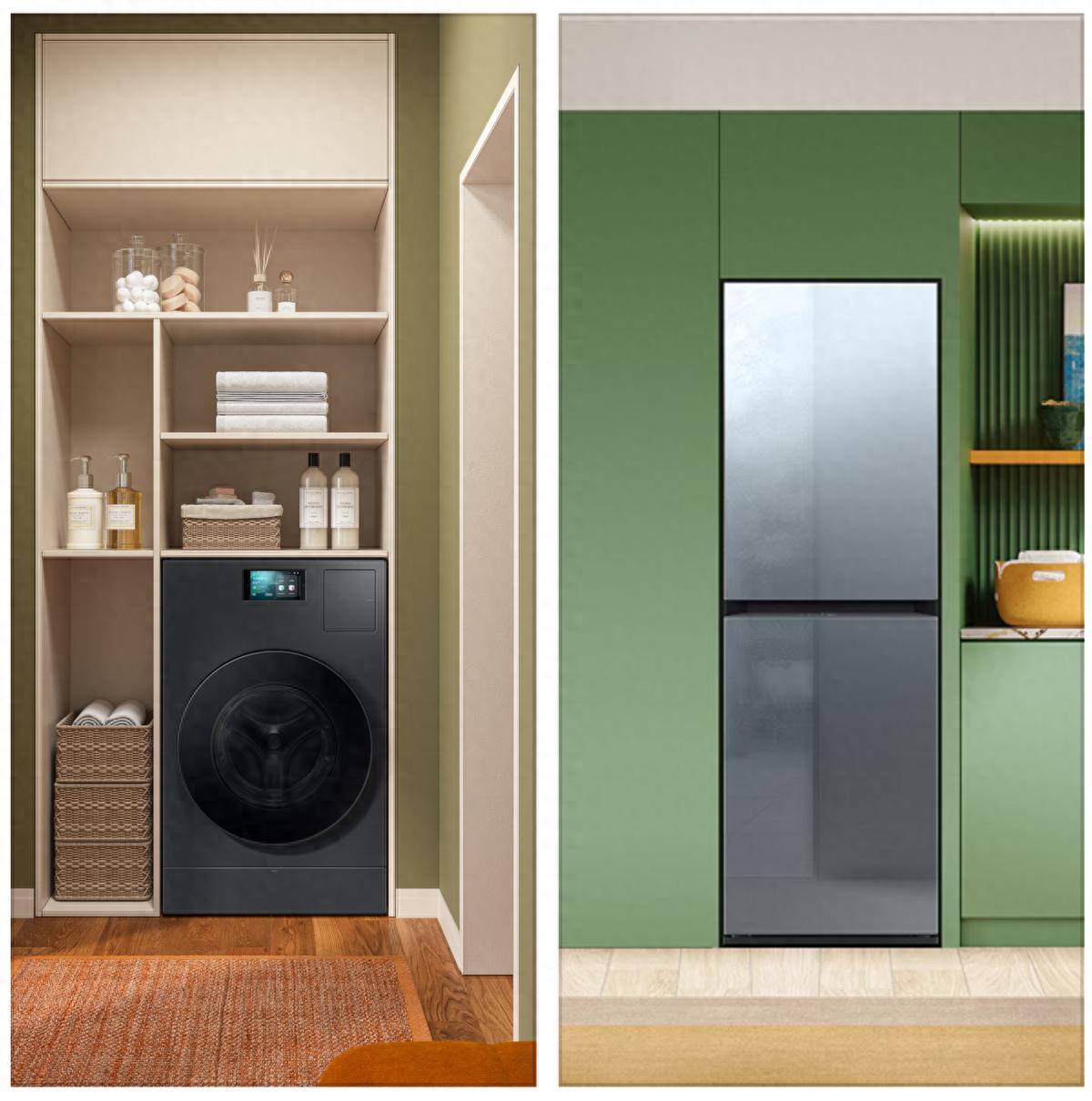 左为三星AI神 黑钻热泵洗烘旗舰,右为三星AI神 黑钻衣物护理机