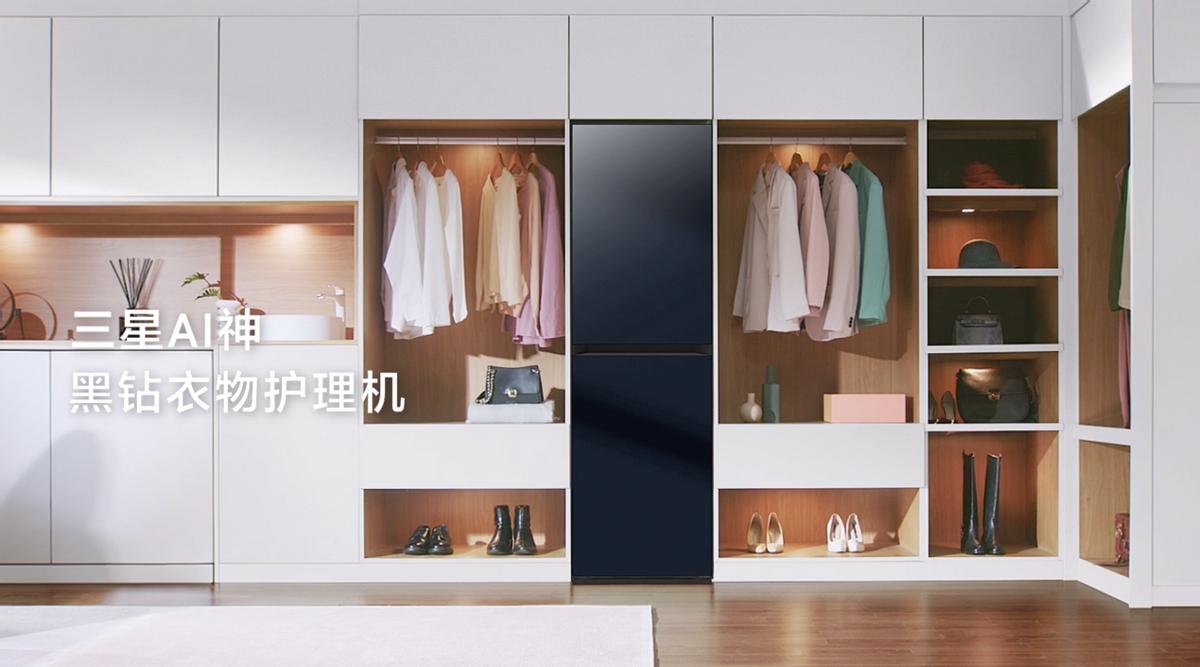 三星AI神 黑钻衣物护理机:蒸汽安心除菌