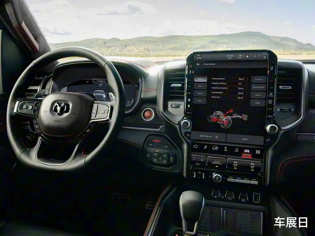 内饰采用大量软性材质包裹等。它搭载6.2L机械增压HEMI V8发动机,最大功率777马力,传动匹配8速自动变速箱和全时四驱系统,0 - 96km/h加速3.5秒,极速190km/h。RAM Power Wagon Cummins Turbo Diesel版外观雄伟粗狂。