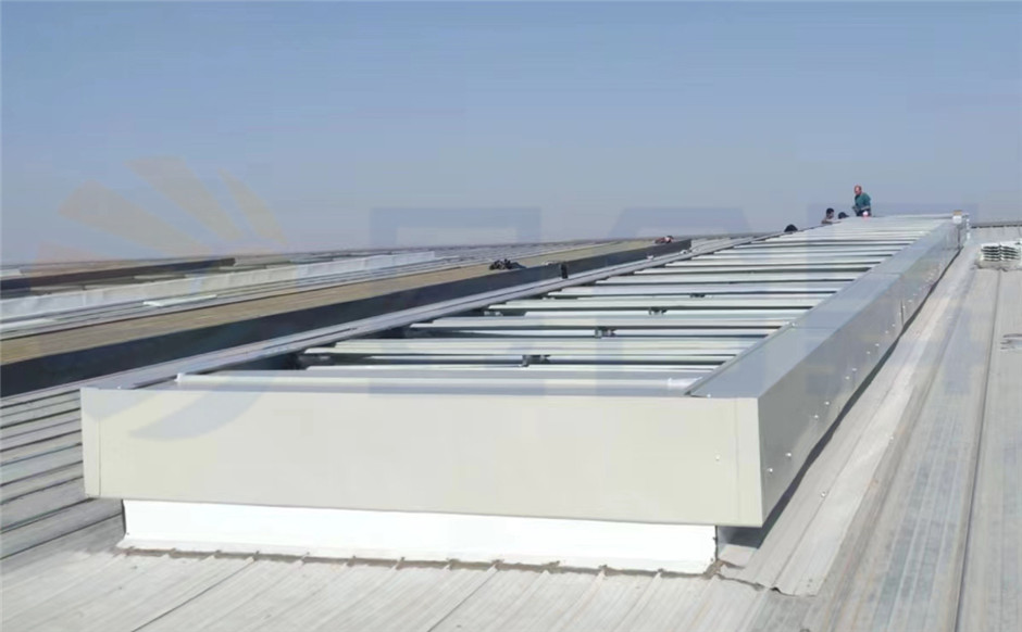 (2)顺坡小喉口屋顶通风器:喉口尺寸较小,在1000mm以内,骨架为镀锌板压制成型,能够兼顾采光、排烟和通风的功能。顺坡通风器适合于电商物流仓储、电子厂、小型加工厂以及轻工业等行业,这类行业对于通风排演的要求不高。此外,顺坡成品排烟通风器也适用于旧厂房的改造。