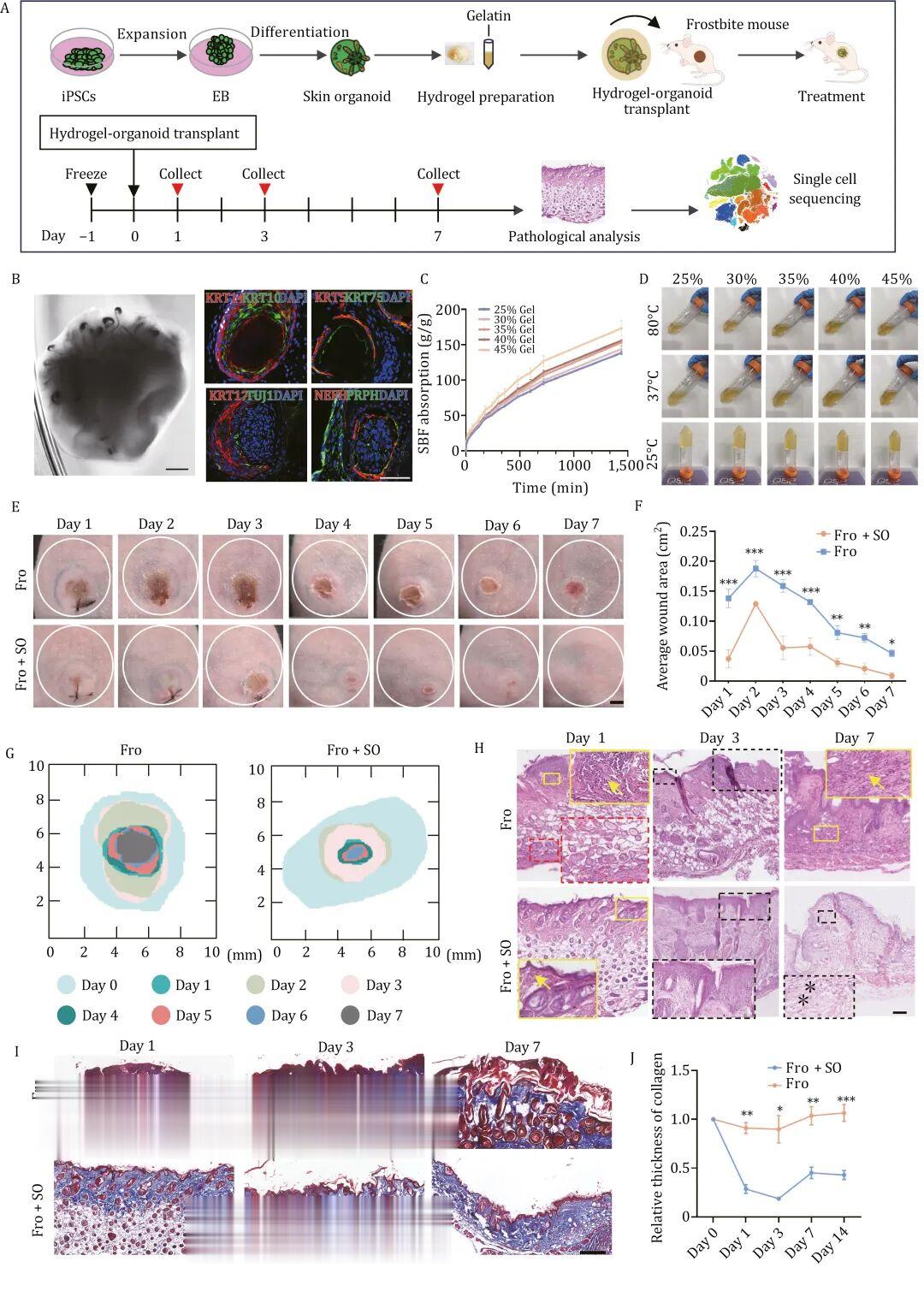 明胶水凝胶包裹的皮肤类器官可促进冻伤皮肤的伤口愈合