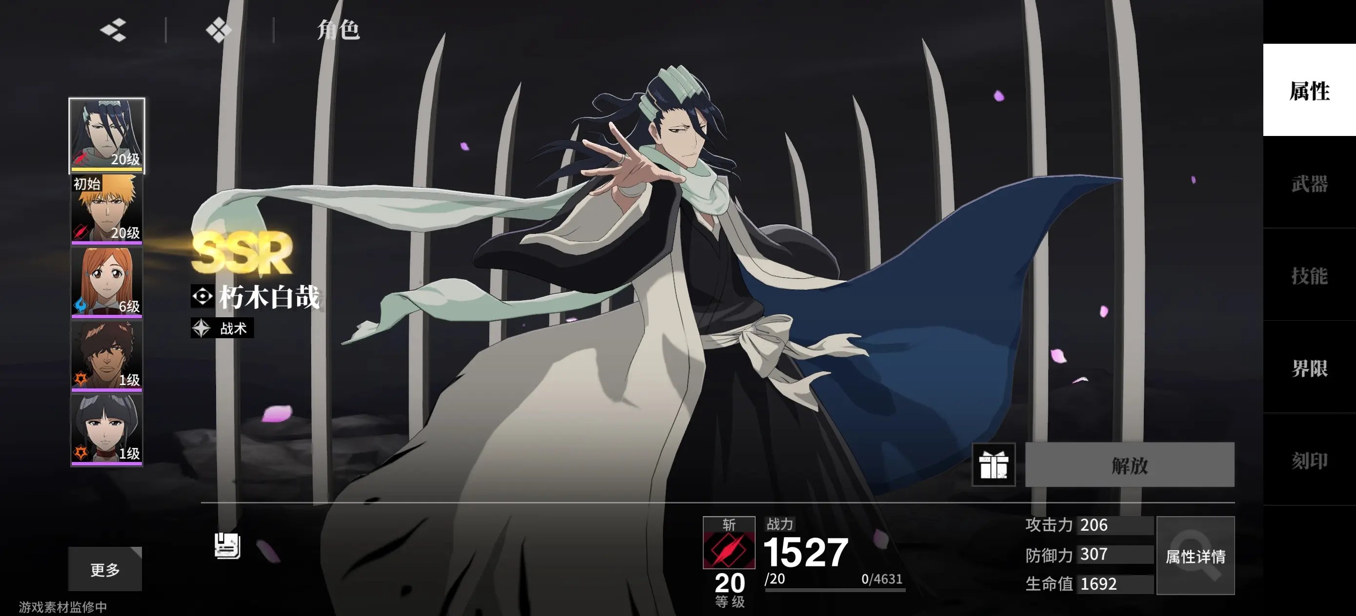 后续依次为朽木露琪亚、茶渡泰虎、黑崎一护・初始、井上织姬、䌷屋雨、涅音梦。这些角色强度顶尖 按抽卡情况优先培养前排和输出。