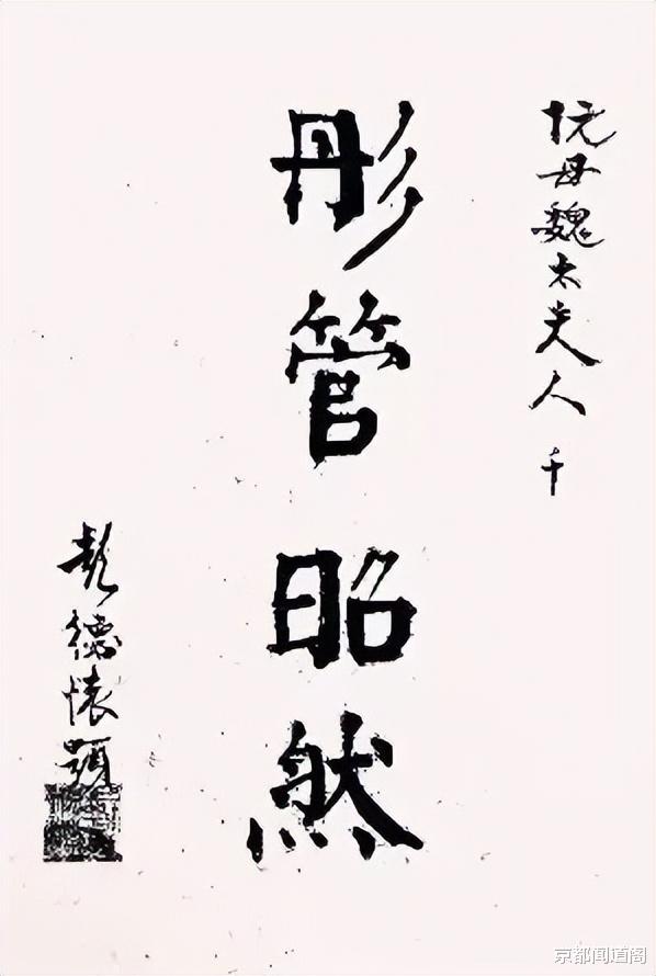 彭德怀元帅所题楷书,如其性格一样,端正刚直,表里如一,爱憎分明,不和稀泥。拥有坚实的楷书功力,再写其他书体,自然笔底风雷吼,胸中百万兵。比如他写的一幅《彤管昭然》书法作品(“彤管”原指古代女史用以记事的杆身漆朱的笔),既得颜体楷书的丰腴质感,又在笔法里融进魏碑的凿岩气势,勾画还有宋体字的挑出精细。