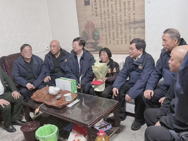 当天下午,慰问团分成多个小组,在当地工作人员陪同下,进村入户开展慰问活动,登门看望未能到场的志愿军老战士。每到一户,慰问团成员都与老战士们促膝长谈、亲切交流,详细询问其身体状况、生活起居和实际需求,悉心倾听他们当年在战场上的英雄故事,为他们送去慰问品和新春祝福,反复叮嘱他们保重身体、安享晚年、福寿安康。