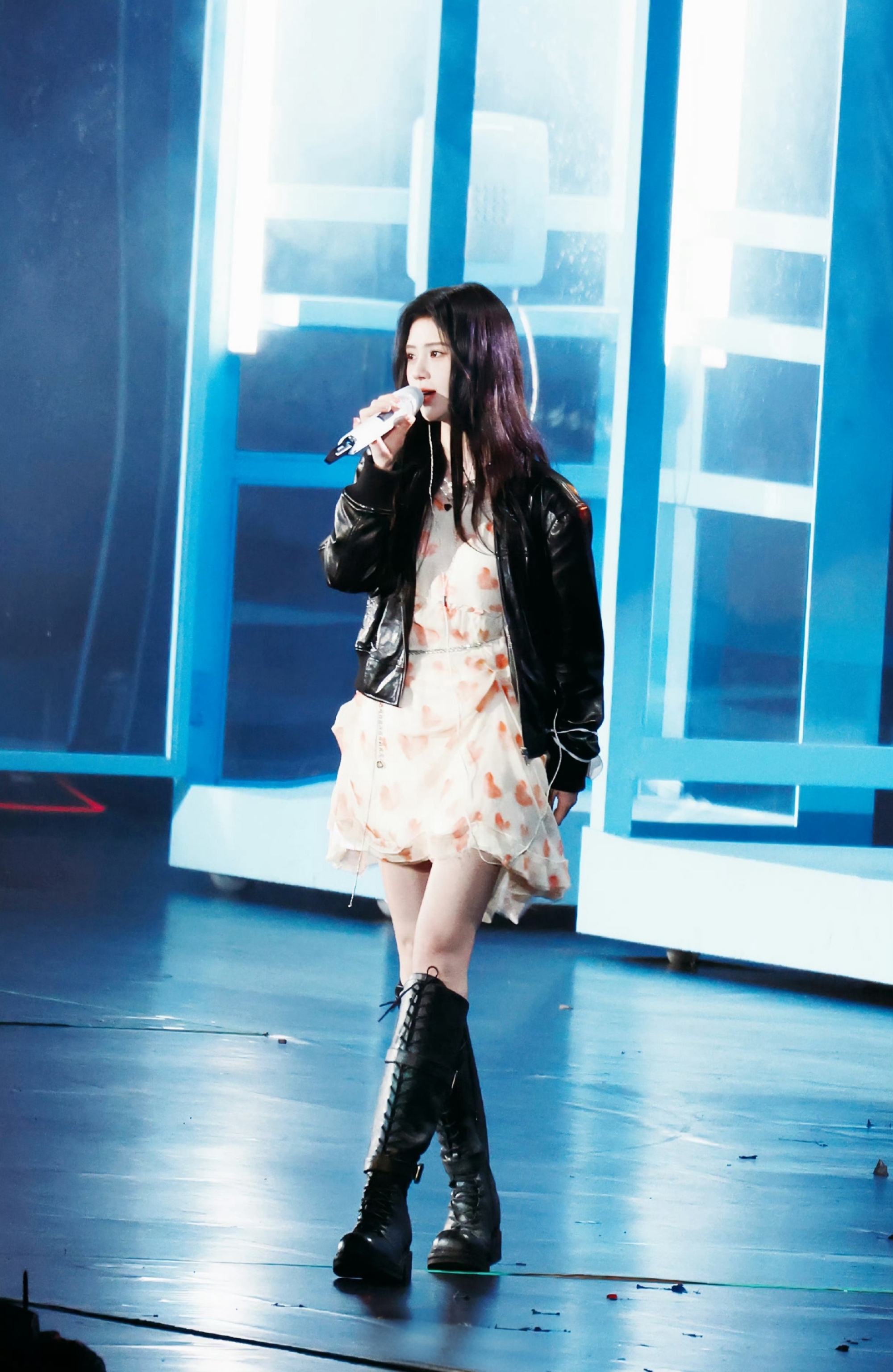 如果说红毯是颜值的盛宴,那么舞台则是实力的自证。随着灯光渐暗,标志性的《雨夜车站》旋律响起。鞠婧祎换上一袭温婉的复古格纹短裙,在氤氲的蓝光与模拟雨景中缓缓走出[2]。她坚持全开麦演唱,细腻的嗓音在体育场内回荡,高音稳健且富有情感穿透力,副歌部分的转音更是处理得游刃有余。这一刻,视觉上的灵动与听觉上的震撼完美交织,现场爆发出雷鸣般的掌声,将盛典气氛推向了最高潮。