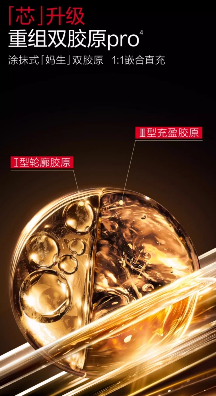 当美妆品牌在行业下行周期普遍面临同质化现象后,丸美依靠技术完成了终极一跃,并在2020年全球首创独家专利成分“I型+III型+C-Pro扣环”嵌合型全人源™胶原蛋白,此后基于该技术的一系列产品,让丸美实现了大象转身。